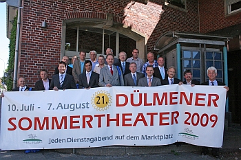 Natürlich darf auch die beliebte Veranstaltungsreihe "Klangspuren" in diesem Sommer nicht fehlen: Sieben Gastgeber laden dabei zu zwölf verschiedenen Veranstaltungen ein. Die bunte, musikalische Palette geht dabei vom Flamenco-Abend in der Alten Brennerei Hellmann über die Jazz-Night im Queens bis hin zum Dämmerschoppen im Außencafé des Anna-Katharinenstifs. Ohne das "großherzige Engagement der Sponsoren" sei der Dülmener Sommer in dieser Form nicht möglich, betonte Wolfgang Schreiber. Bürgermeister Jan Dirk Püttmann richtete seinen Dank nicht nur an die vielen Unterstützer, sondern auch an Wolfgang Schreiber, der sich seit Jahren unermüdlich für den Dülmener Sommer einsetzt. Für alle Sponsoren gab es als kleines Dankeschön eine n original "Dülmener-Sommer"-Rucksack, natürlich gut gefüllt mit vielen Leckereien.