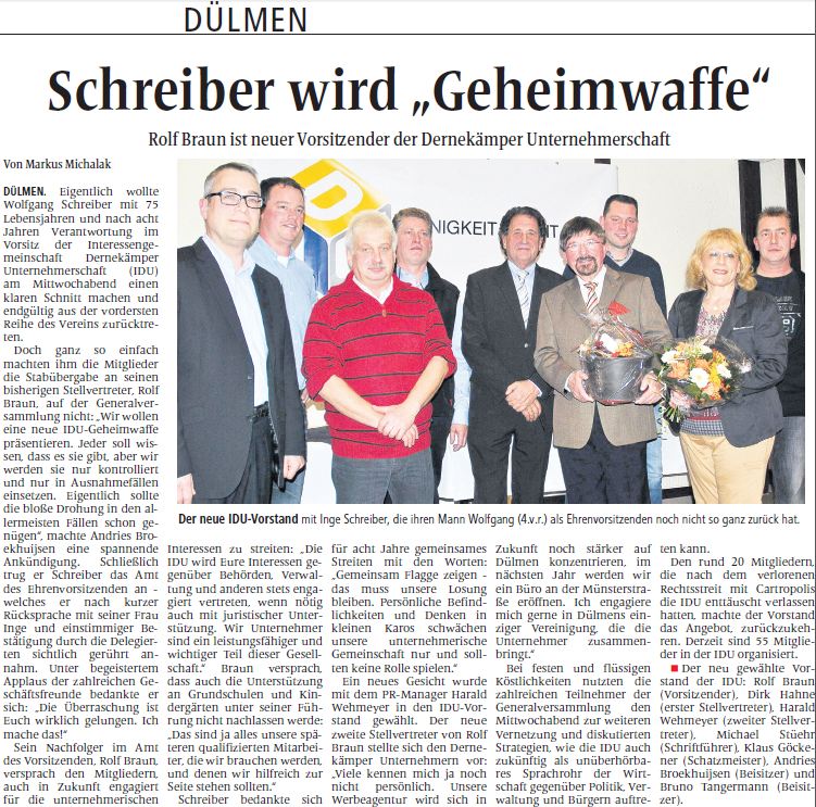 | 11/2005 | Wahl zum 1. Vorsitzenden der IDU (Interessengemeinschaft Dernekämper Unternehmen). |